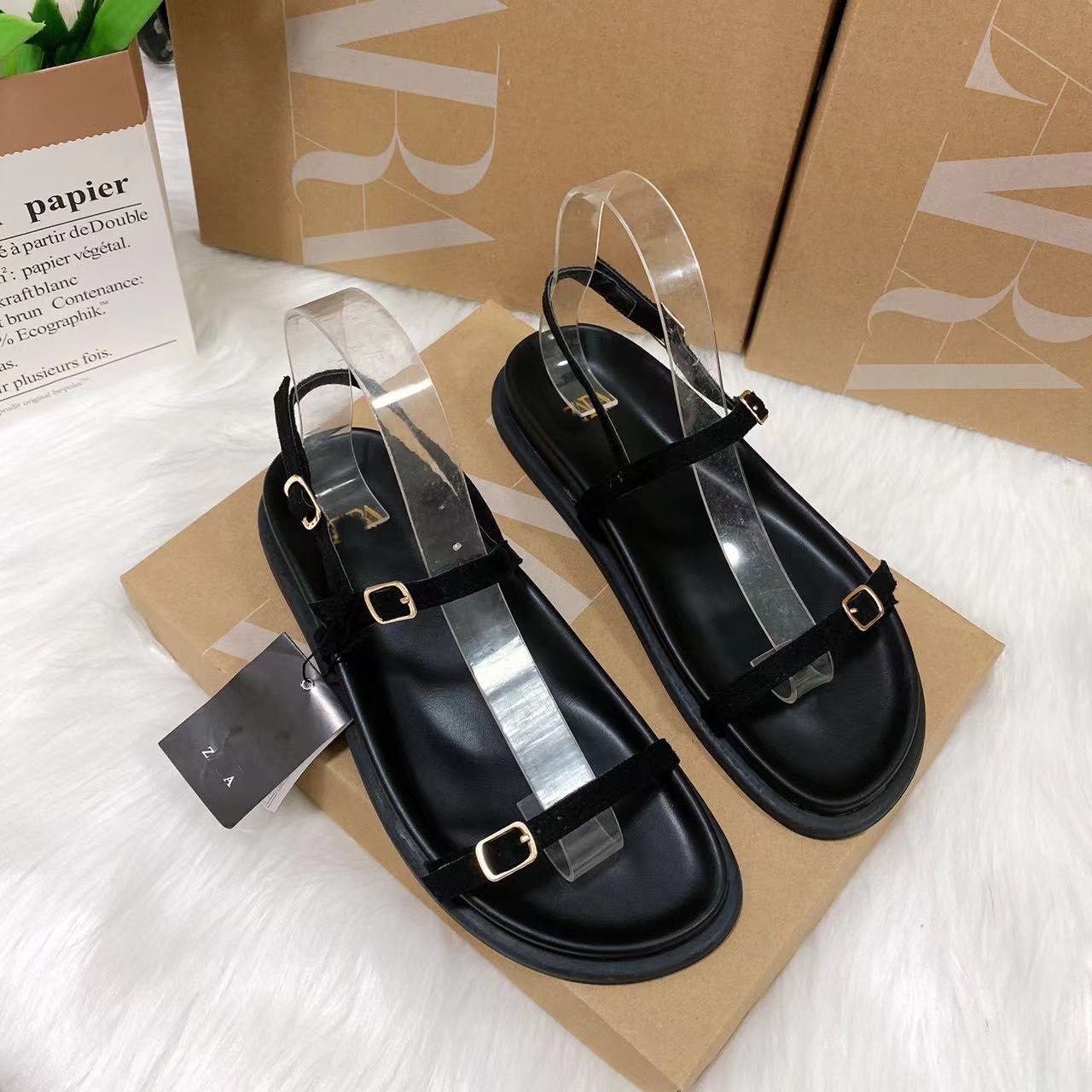 Sleek and minimalist, these flat black Zara sandals offer effortless sophistication. Designed for both comfort and style, they complement any casual or chic outfit, making them ideal for everyday wear or relaxed outings.