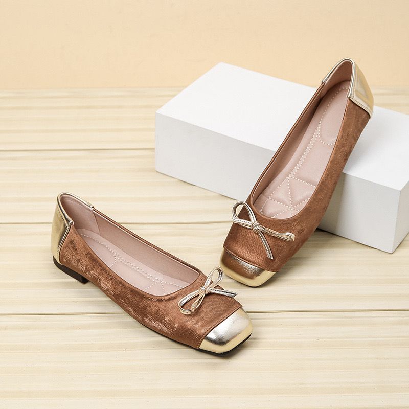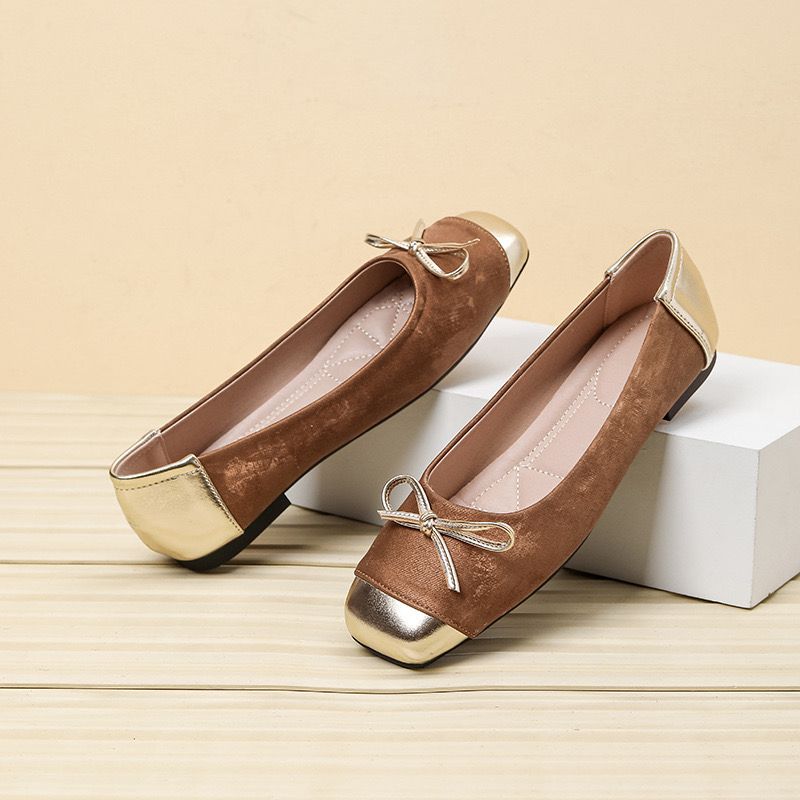 Step out in style with this Flat Brown and Cover Shoe, featuring a warm brown tone paired with a hint of gold for a touch of elegance. Comfortable, chic, and perfect for any occasion. Runs normal for slim feet, wide and full feet can take a size higher.